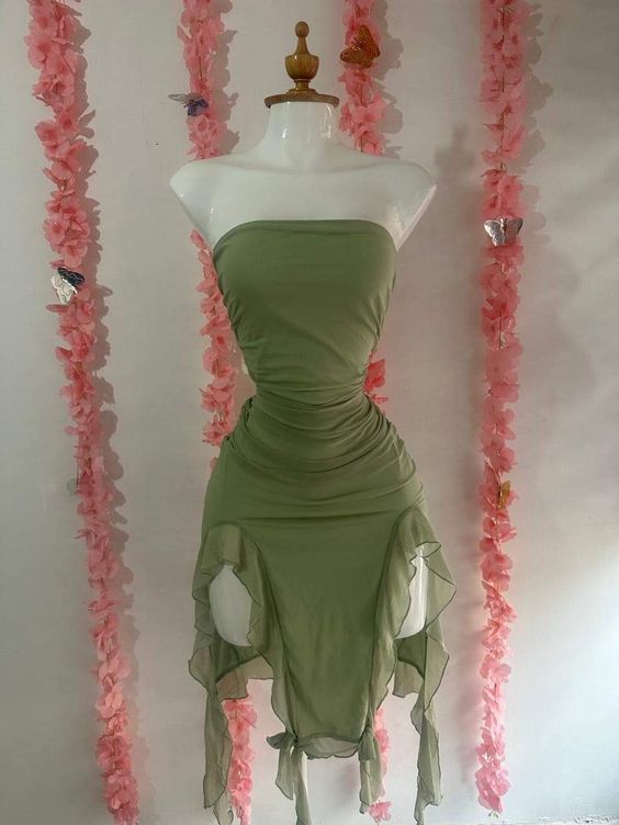Cute Sheath Strapless Green Chiffon Homecoming Dresses Short Birthday Dress With Ruffles HZ1024