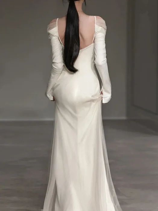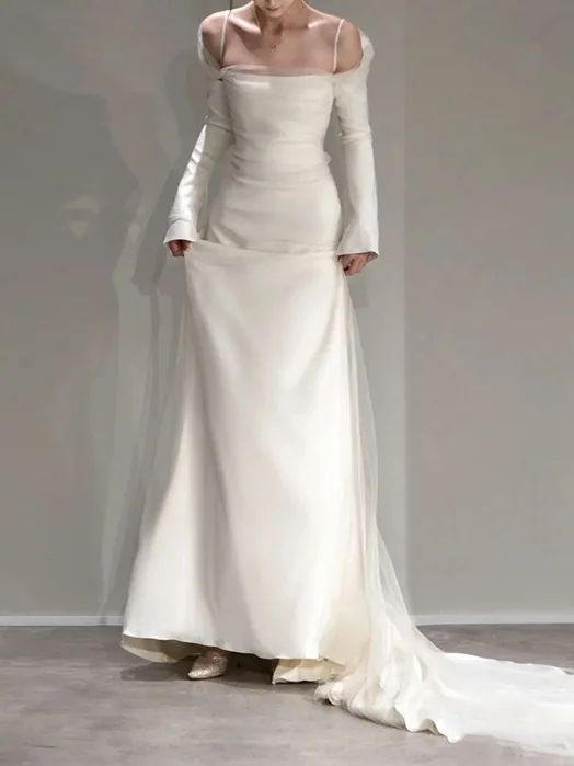 Elegant Mermaid Off shoulder Satin Long Sleeve Wedding Dress HZ1024