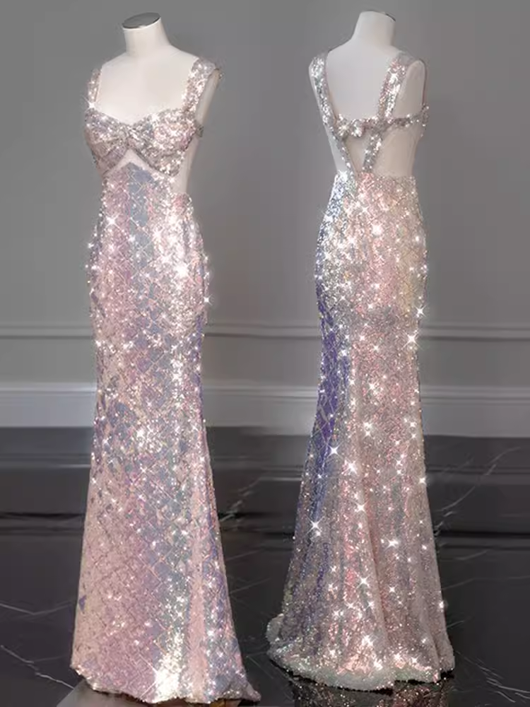 Elegant Mermaid Straps Long Sequin Prom Dress HZ1024