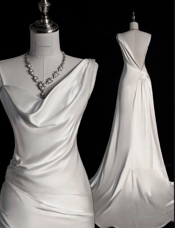 Elegant Mermaid Straps Satin Long White Wedding Dress HZ1024