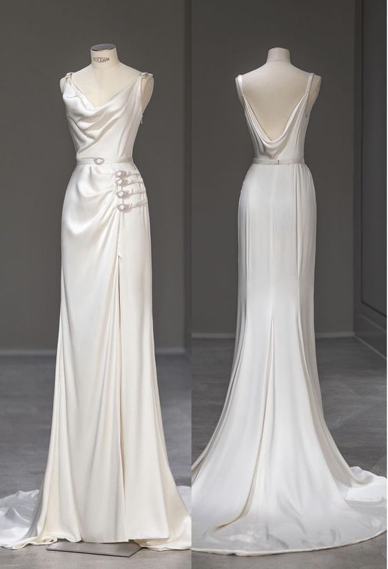 Elegant Mermaid Straps Satin Long White Wedding Dresses HZ1024