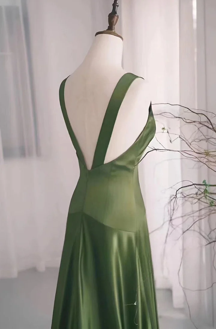 Green Satin V-Neckline Low Back Prom Dress HZ1024
