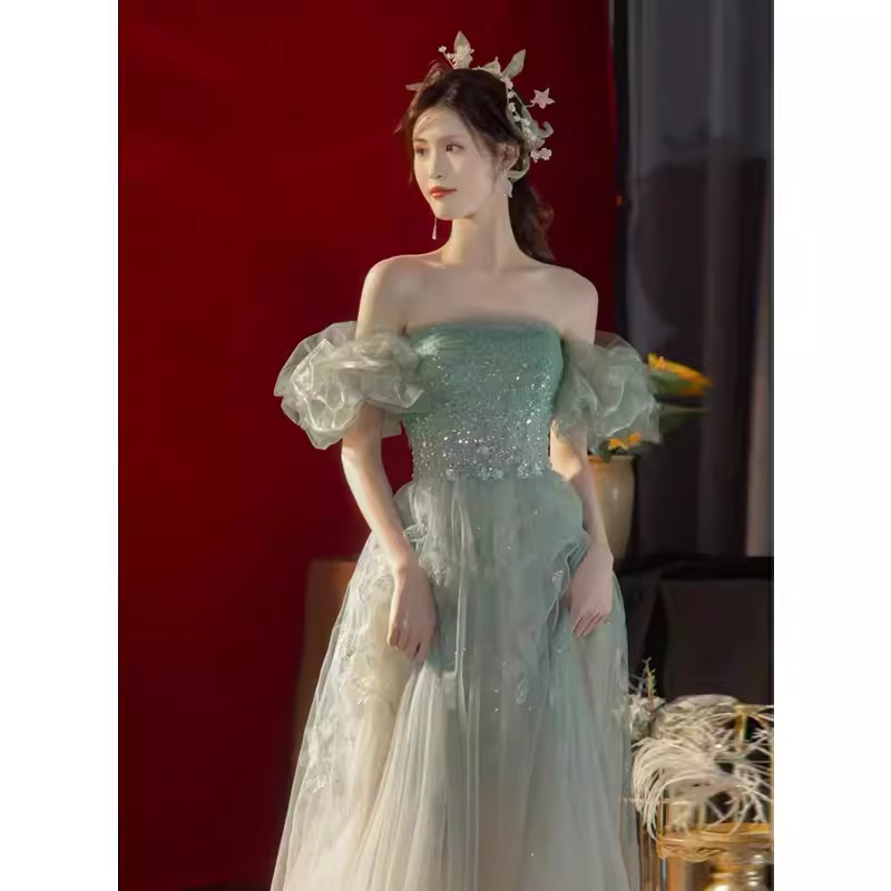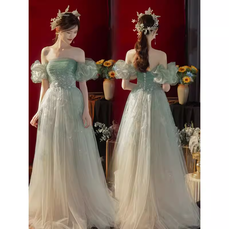 Lovely A line Off The Shoulder Mint Green Tulle Long Prom Dress HZ1024