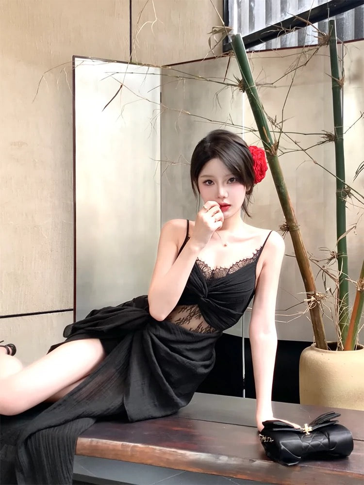 Pretty Sheath Spaghetti Straps Black Ankle Length Prom Dresses Evening Dress HZ1024