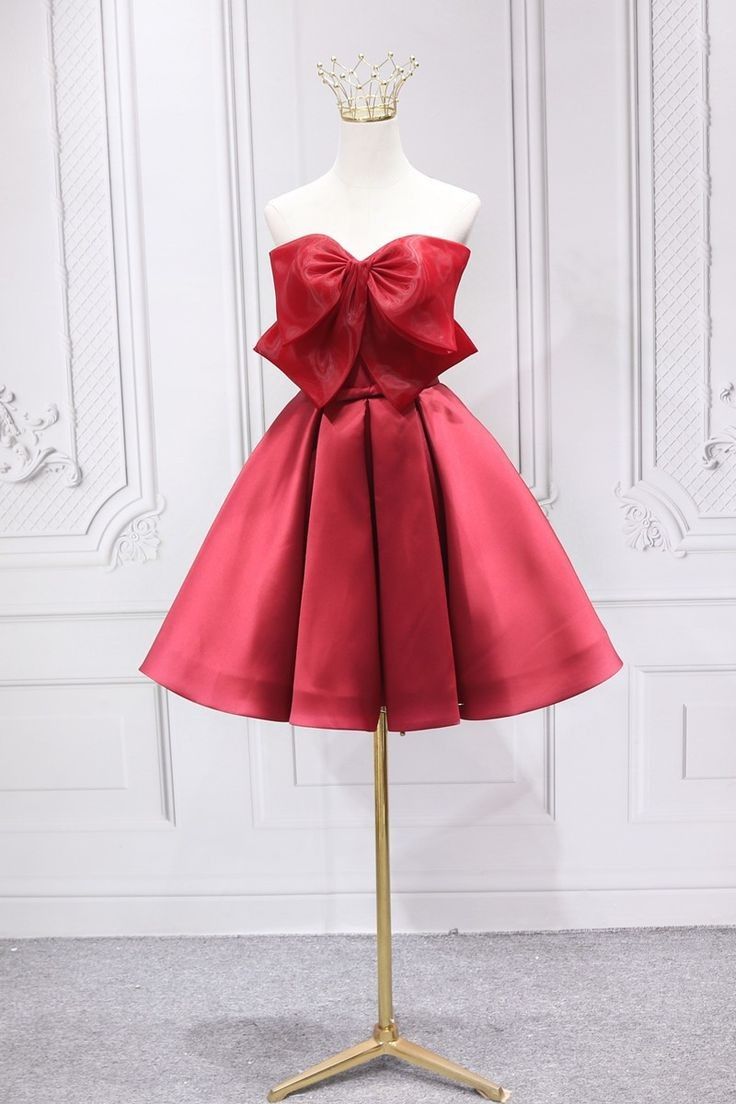 Red Satin Short Prom Dress Lovely Red Knee Length Homecoming Dress HZ1024