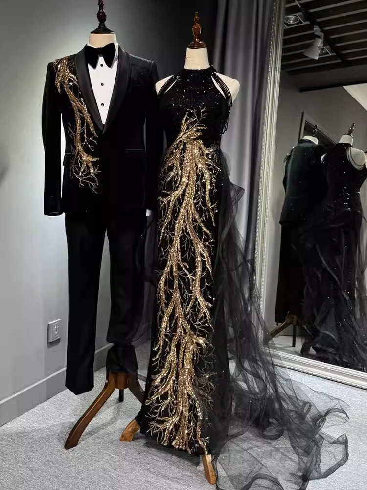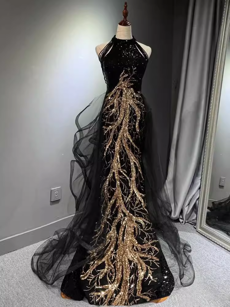Sexy A line High Neckline Long Black Prom Dresses HZ1024