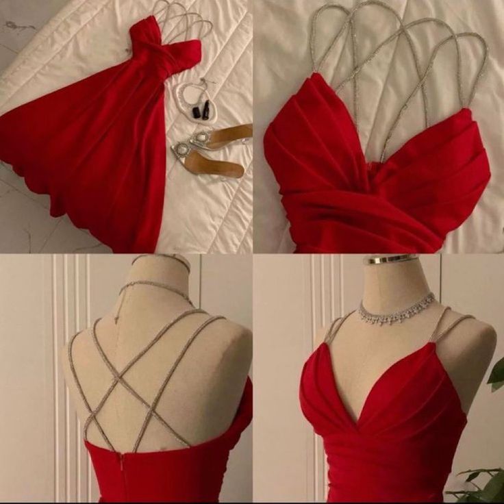 Sexy A line Spagehtti Straps Red Knee Length Chiffon Homecoming Dresses Party Dress HZ1024