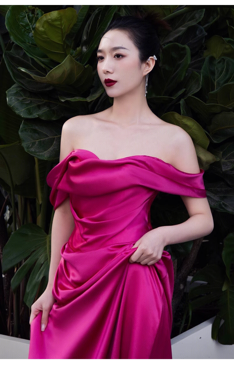 Sexy Mermaid Off The Shoulder Hot Pink Long Prom Dresses Satin Birthday Outfits HZ1024