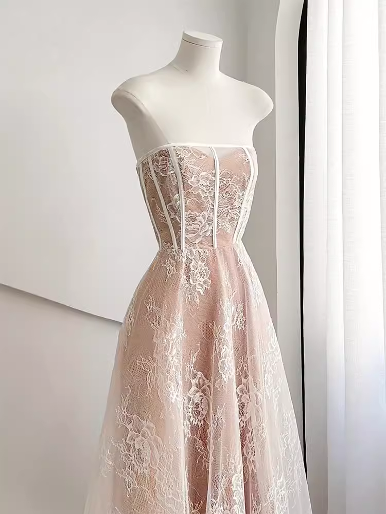 Simple A Line Strapless Lace Birthday Outfits Champagne Homecoming Dresses HZ1024