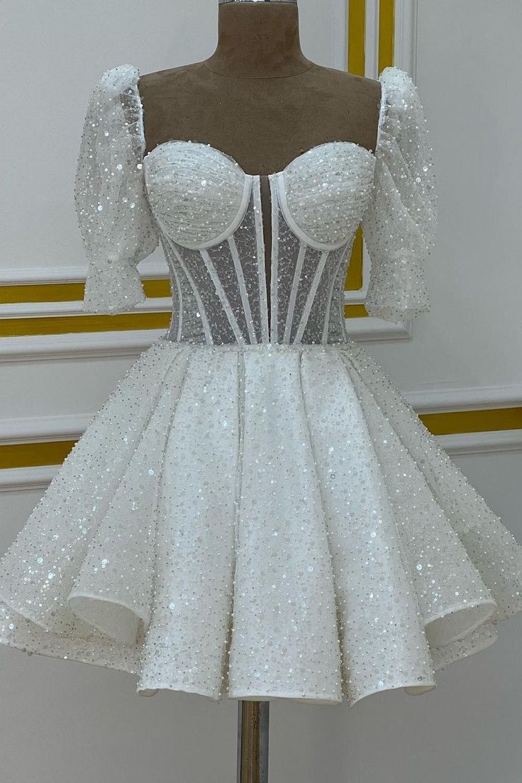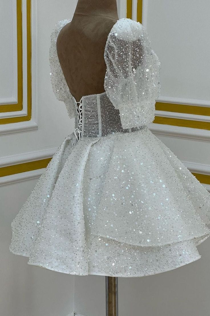 Sweetheart Sequin Short Homecoming Dress with Puff Sleeves HZ1024