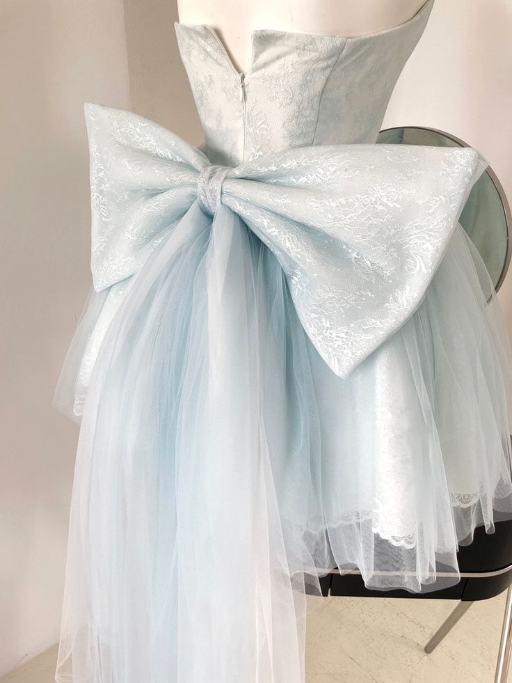 Baby Blue Balletcore Lace Bustier Dress Basque Waist Homecoming Dress Birthday Outfit HZ1024