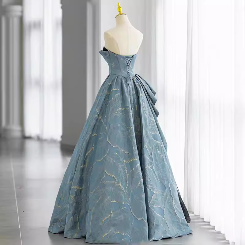 Ball Gown Strapless Blue Long Prom Dress HZ1024