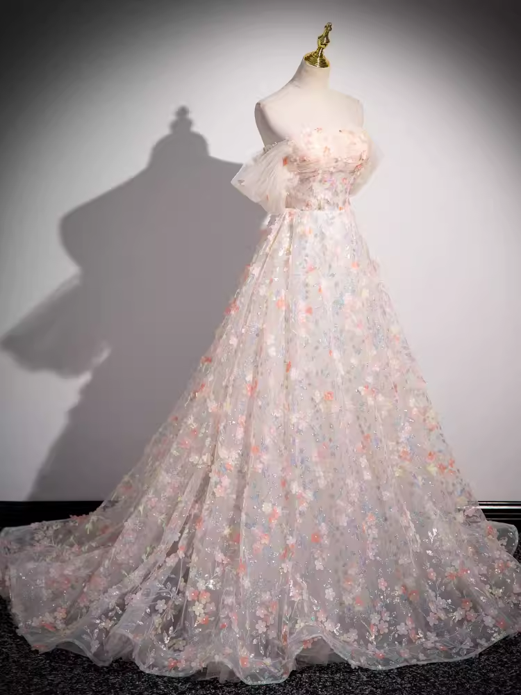 Beautiful A line Strapless Floral Long Prom Dress HZ1024