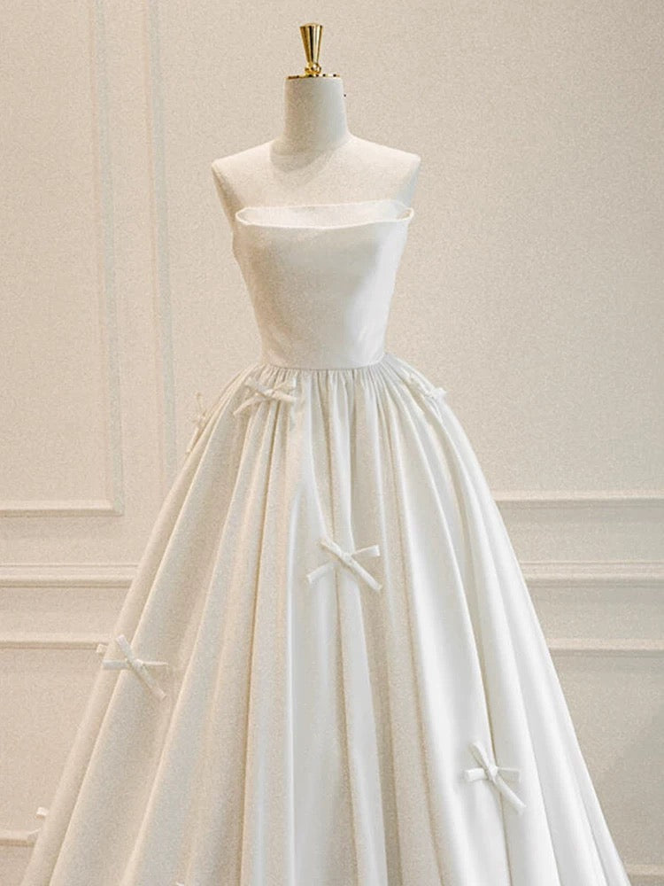 Classy Ball Gown Sweetheart Satin Long Wedding Dresses With Bowknots HZ1024