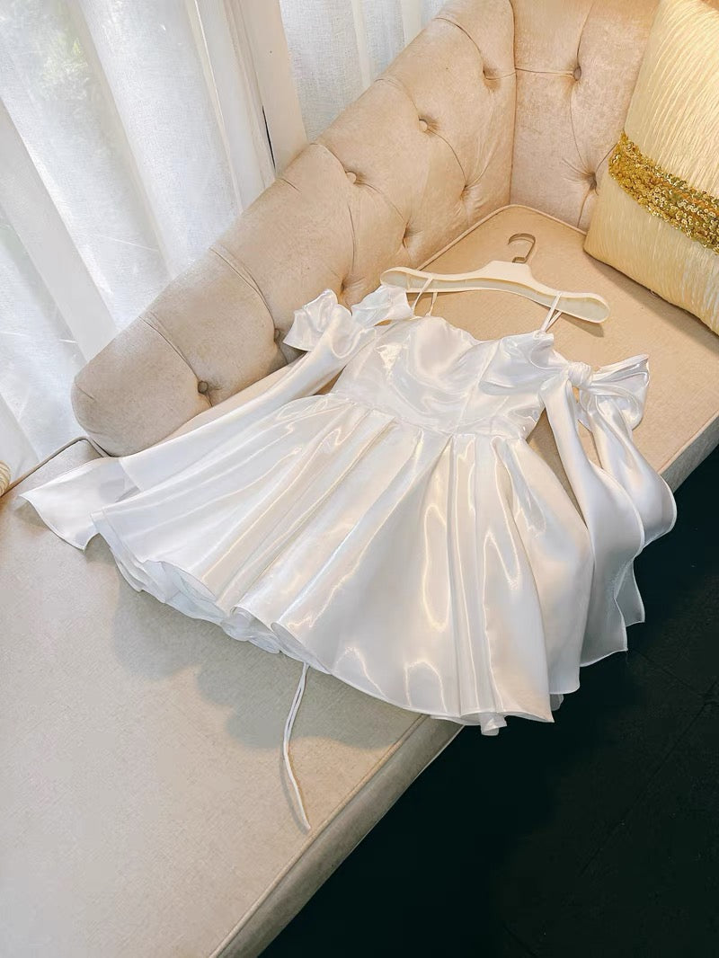 Cute A line Spaghetti Straps Bowknot White Short Homecoming Dress Birthday Dresses HZ1024