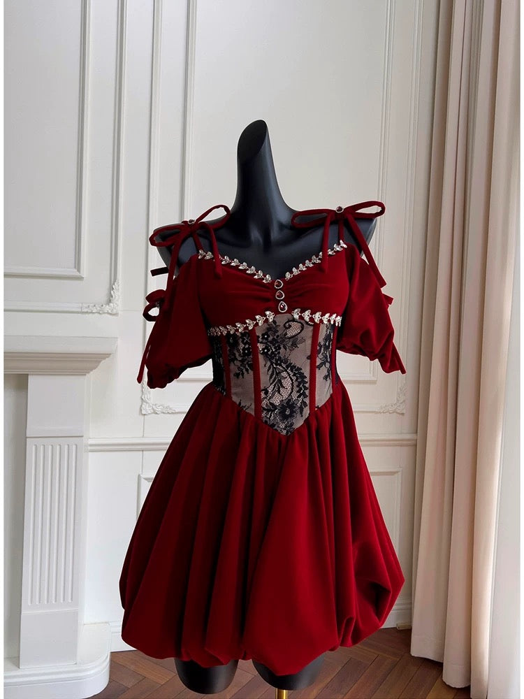Cute A Line Spaghetti Straps Velvet Red Homecoming Dresses Birthday Outfits With Beads HZ1024