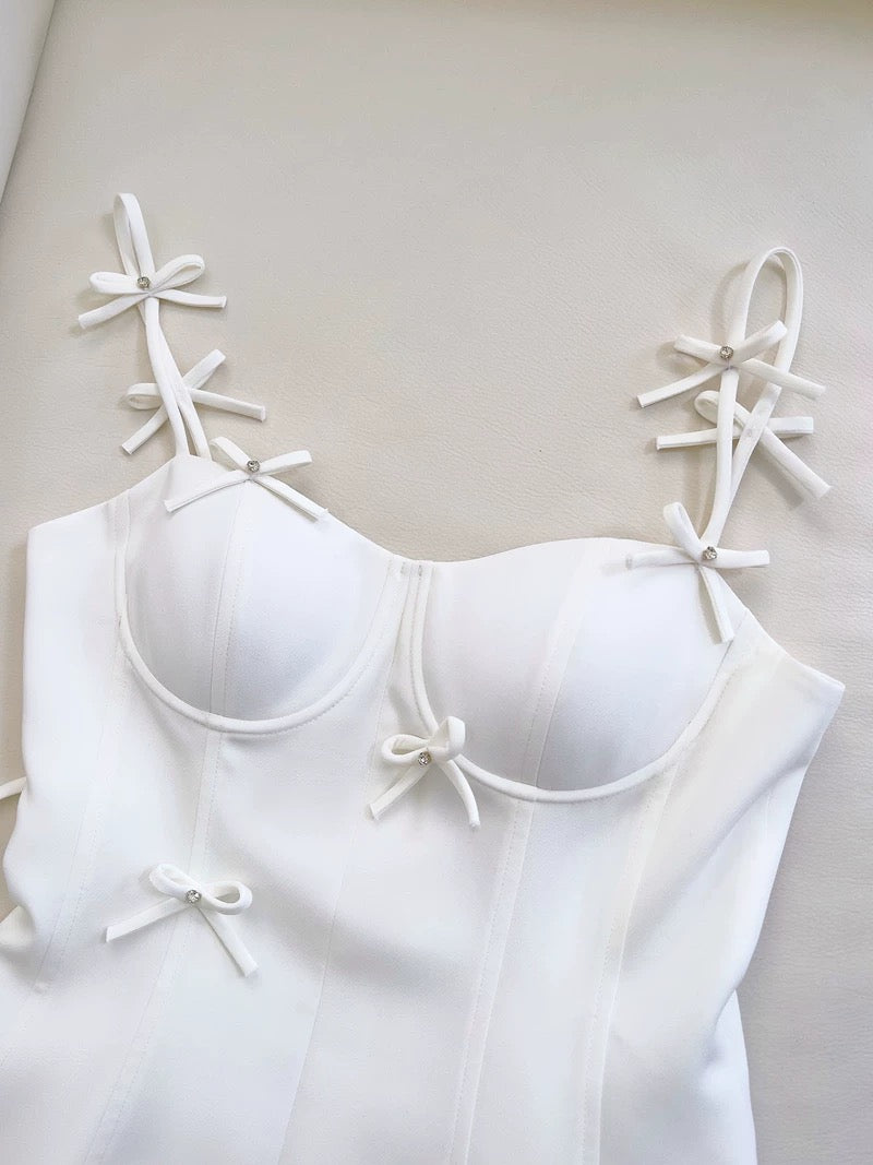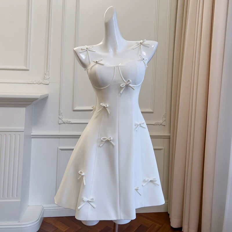 Cute A line Spaghetti Straps White Short Homecoming Dress Birthday Dresses With Bow HZ1024