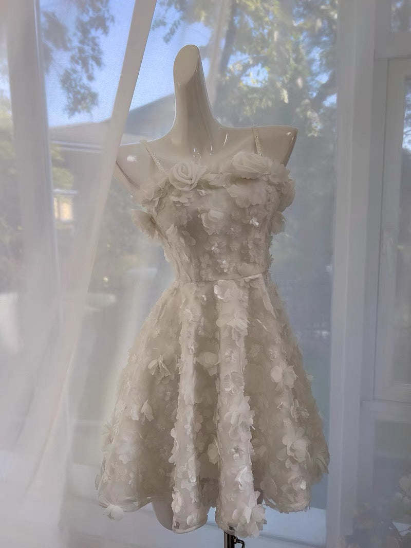 Cute A line Spaghetti Straps White Short Homecoming Dress Birthday Dresses With Flowers HZ1024
