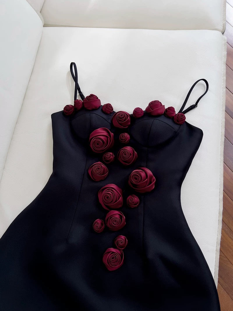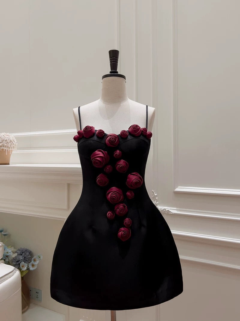Cute A Line Straps Black Satin Homecoming Dresses Birthday Outfits With Flowers HZ1024