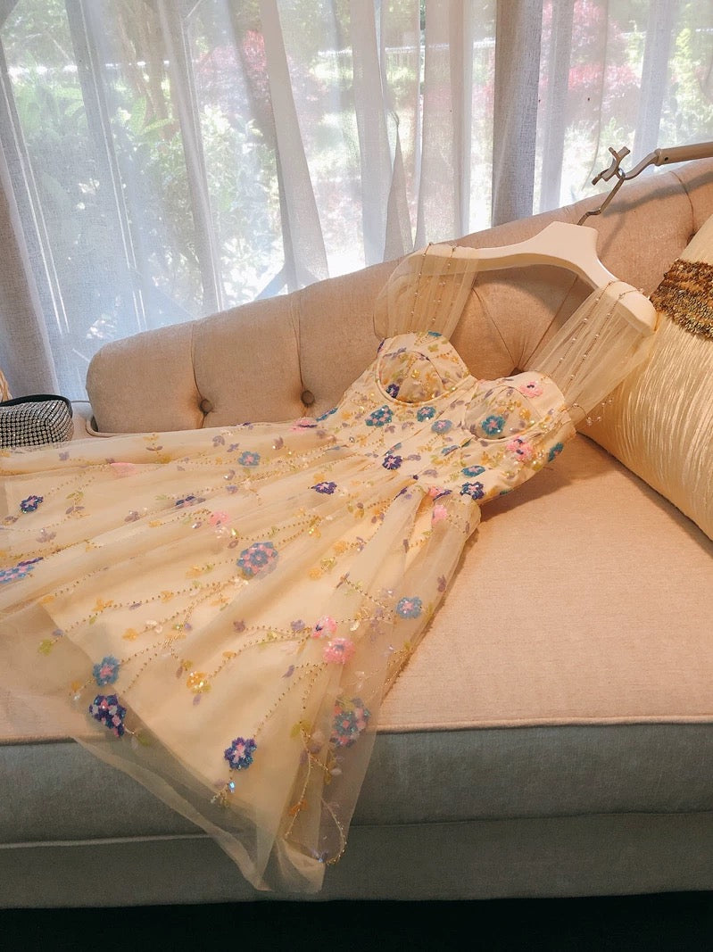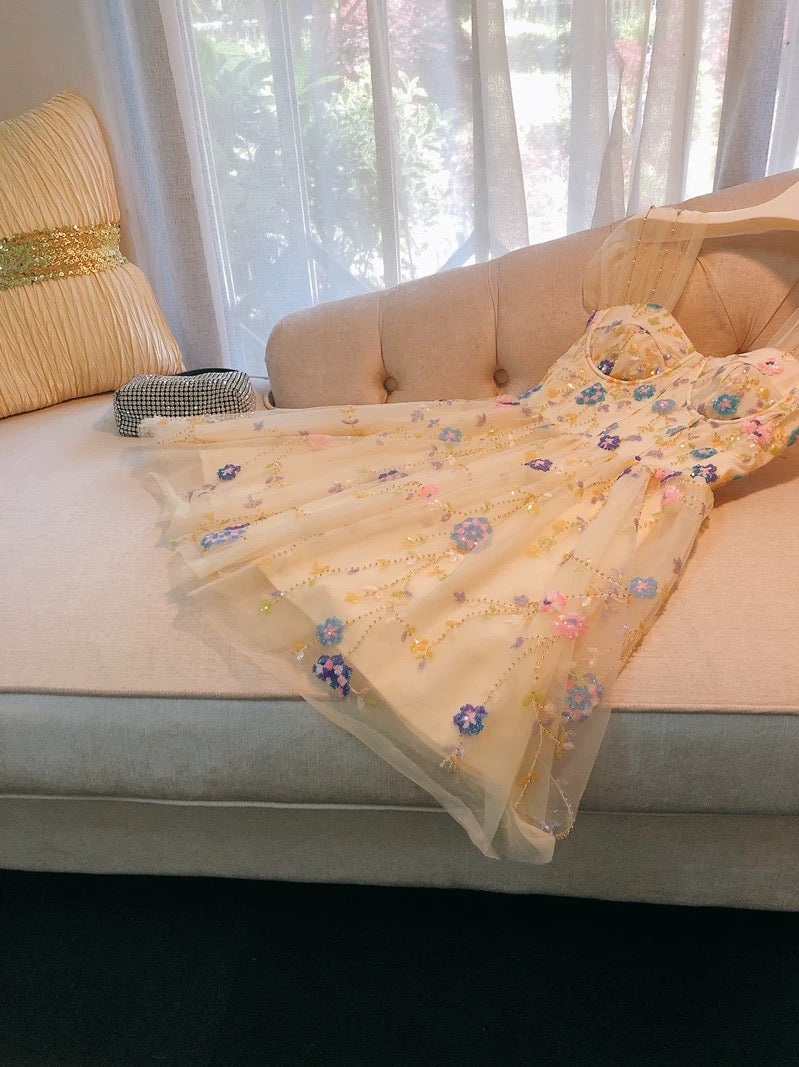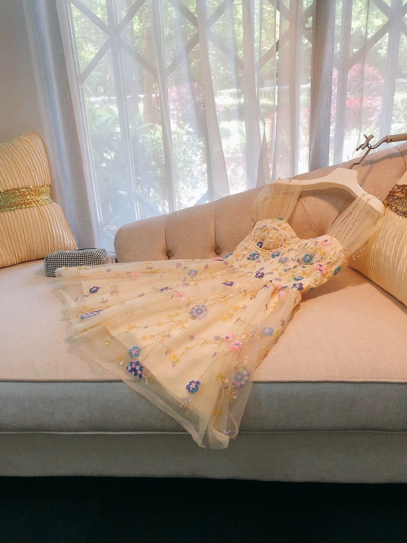 Cute Ball Gown Straps Champagne Short Tulle Homecoming Dresses 18th Birthday Outfit HZ1024