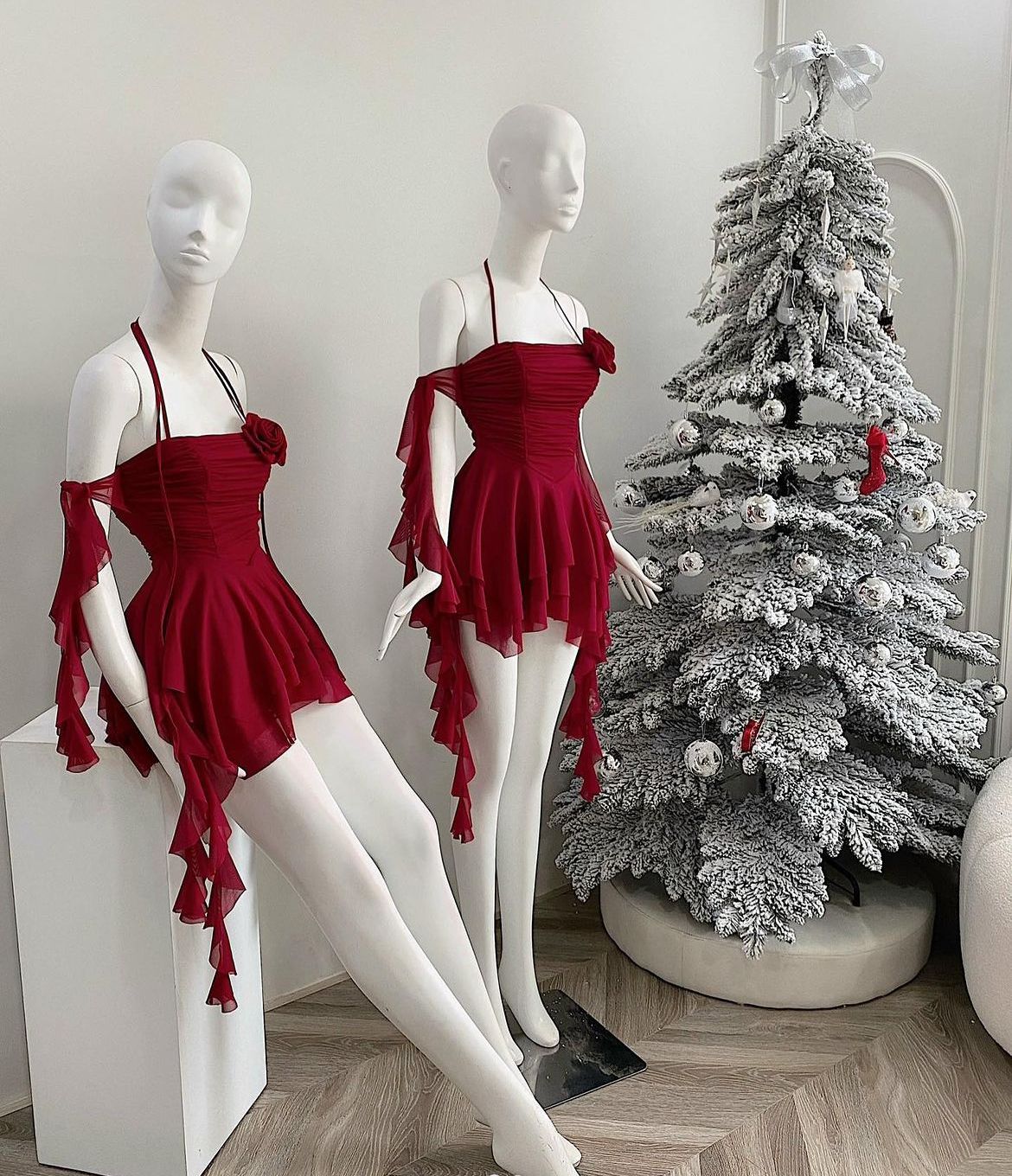 Cute Sheath Halter Burgundy Ruffles Homecoming Dress Short Birthday Outfits HZ1024