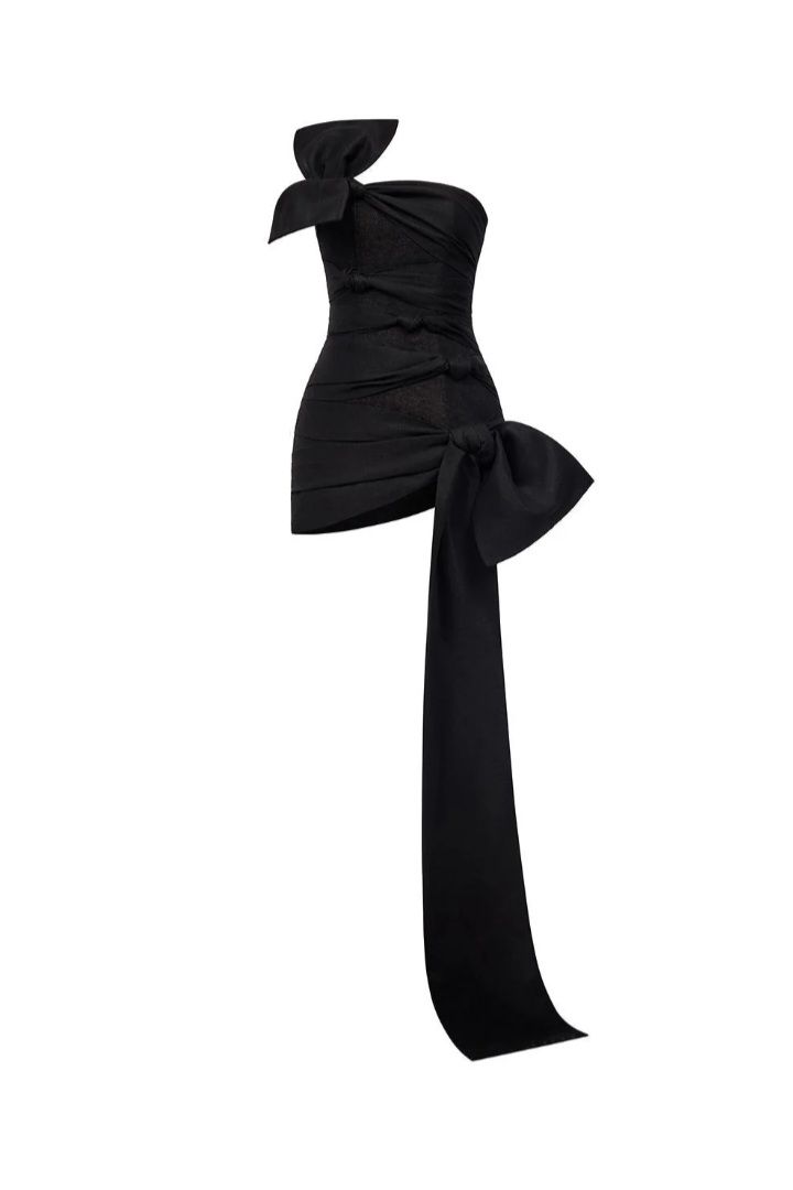 Cute Sheath Strapless Black Short Satin Homecoming Dresses Cocktail Dress With Bow HZ1024