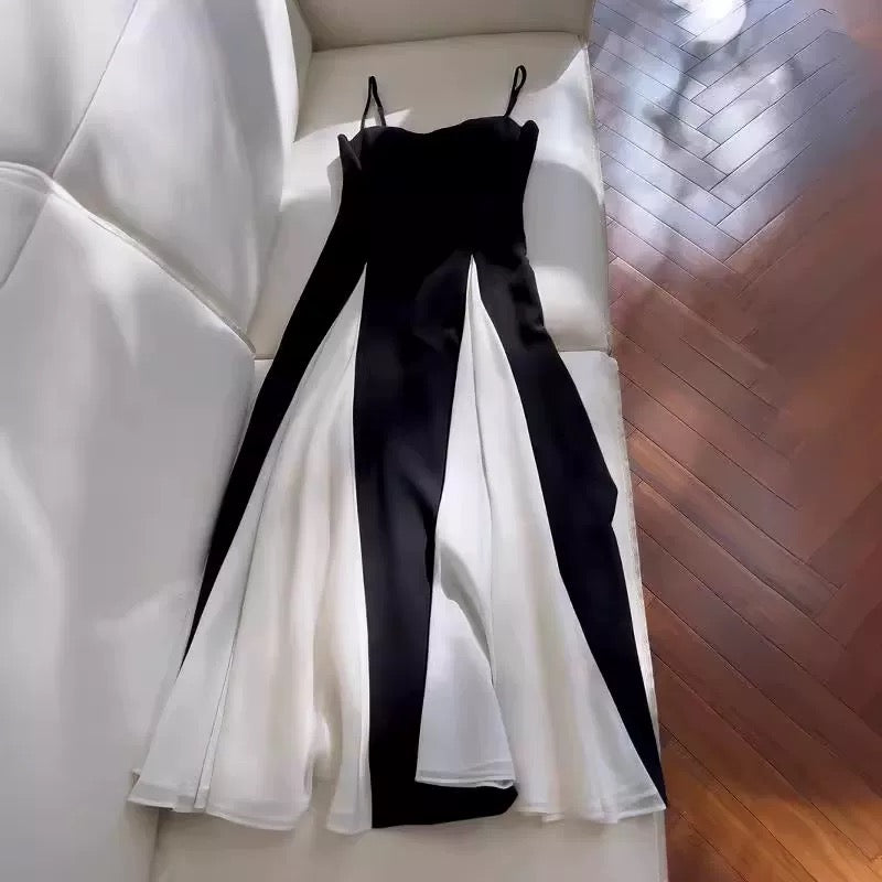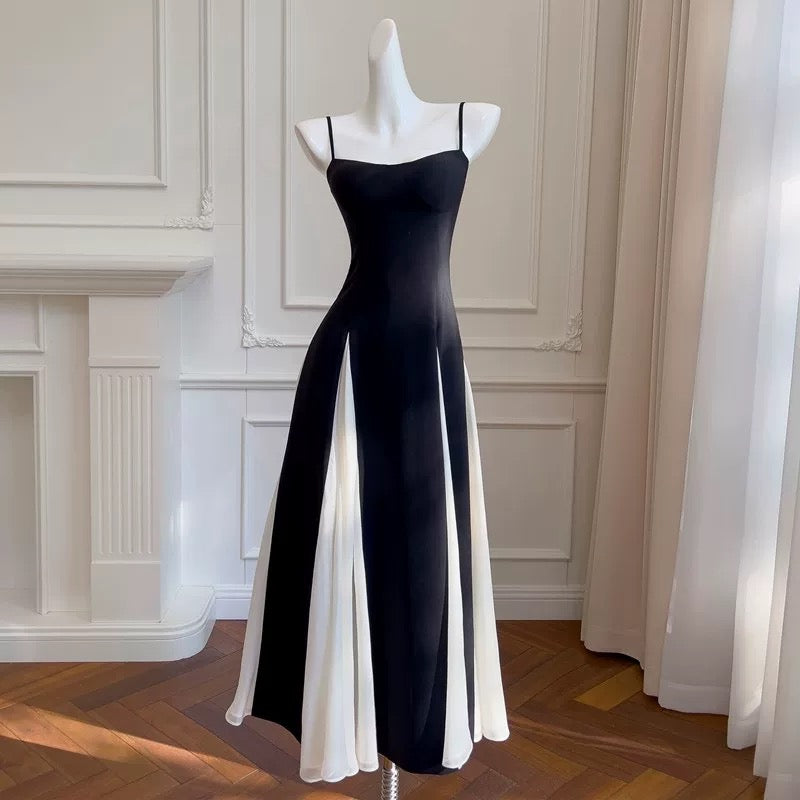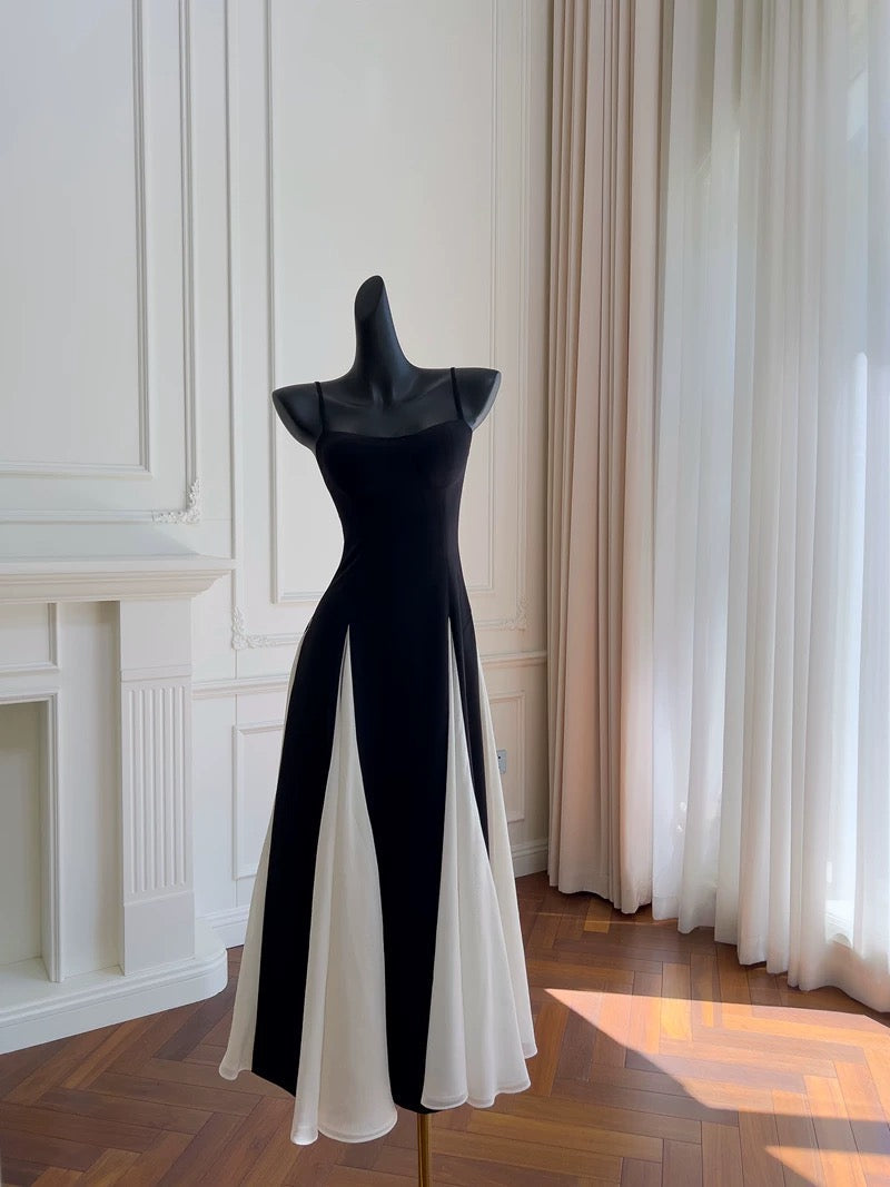 Elegant A line Spaghetti Straps Black Chiffon Prom Dresses Evening Dress HZ1024