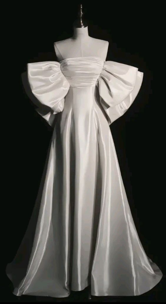 Elegant Ball Gown Strapless Satin Long White Wedding Dresses With Bow HZ1024