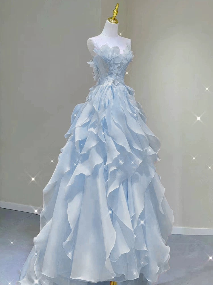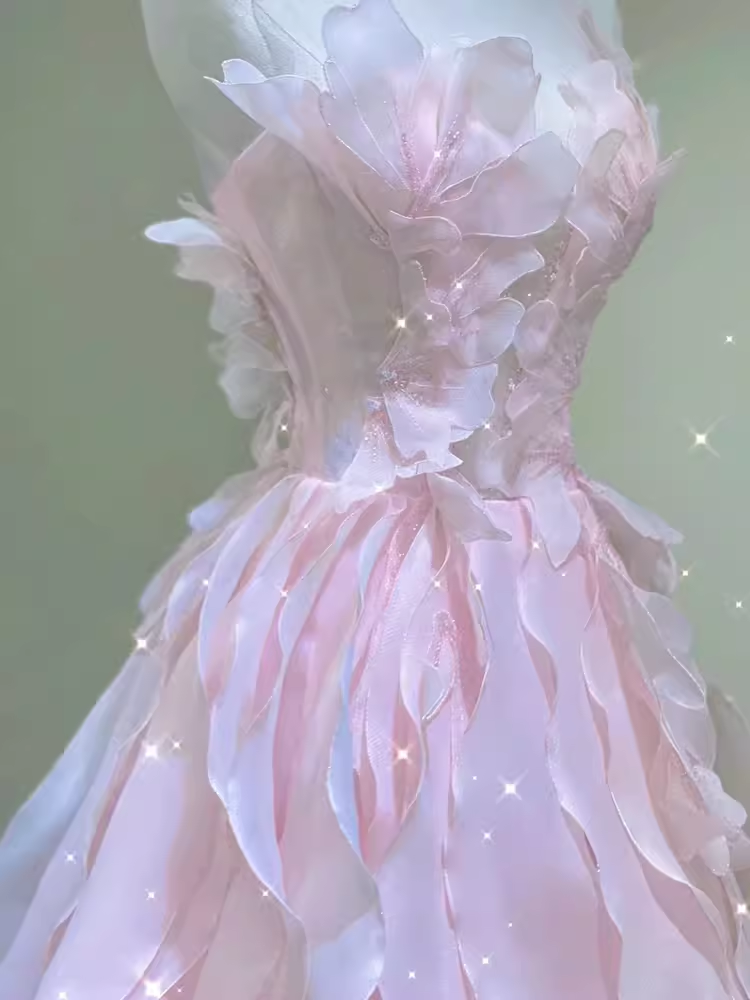 Fairy A Line Sleeveless Pink Long Floral Prom Dress HZ1024