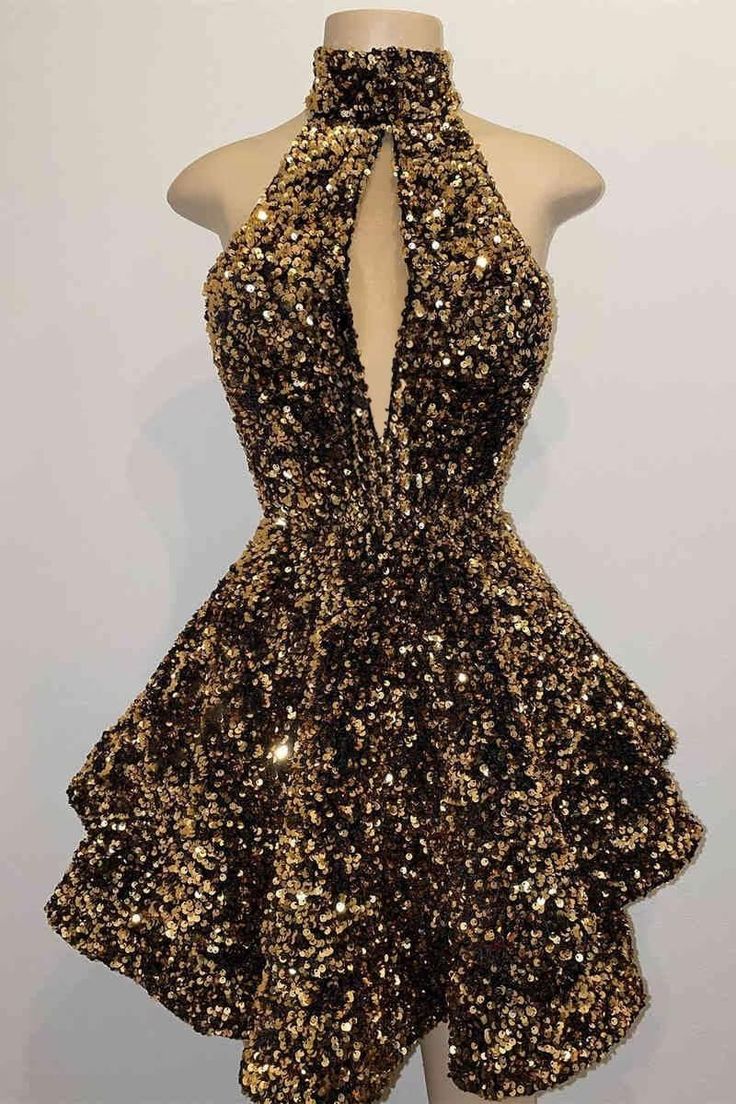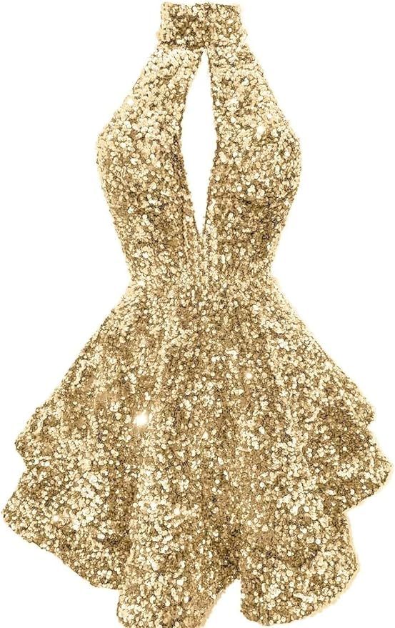 Halter Sequin Homecoming Dresses Short Sparkly Glitter Cutout Mini Backless Tight Bodycon HZ1024