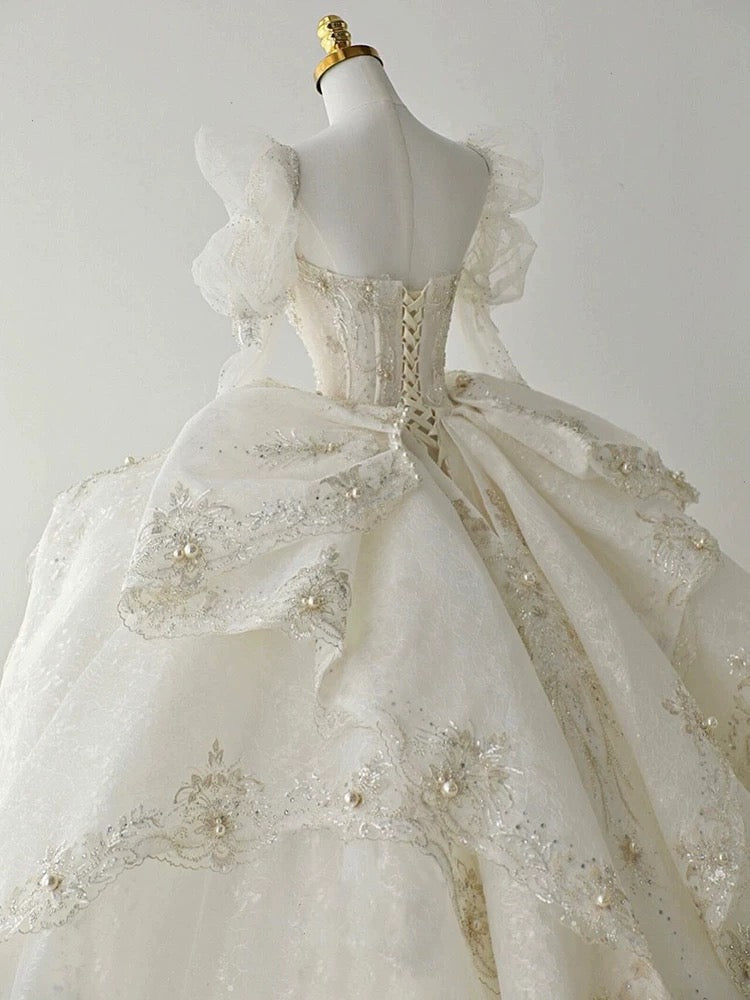 Luxury Ball Gown Sweetheart Sequin White Long Sleeves Wedding Dresses With Beads HZ1024