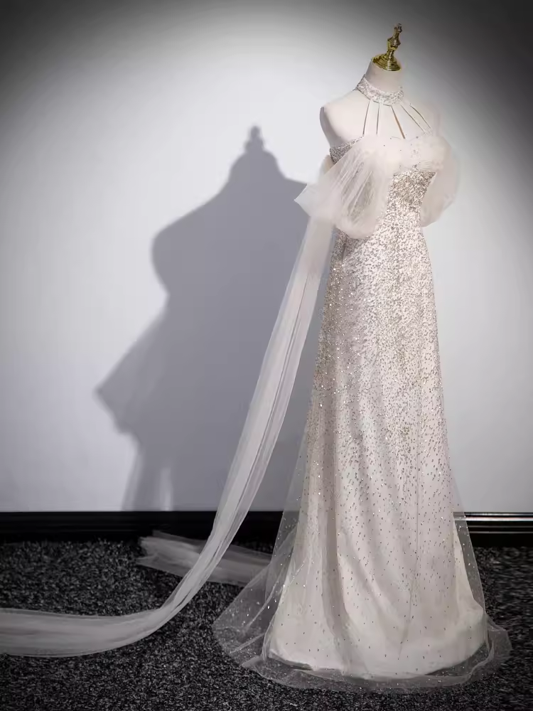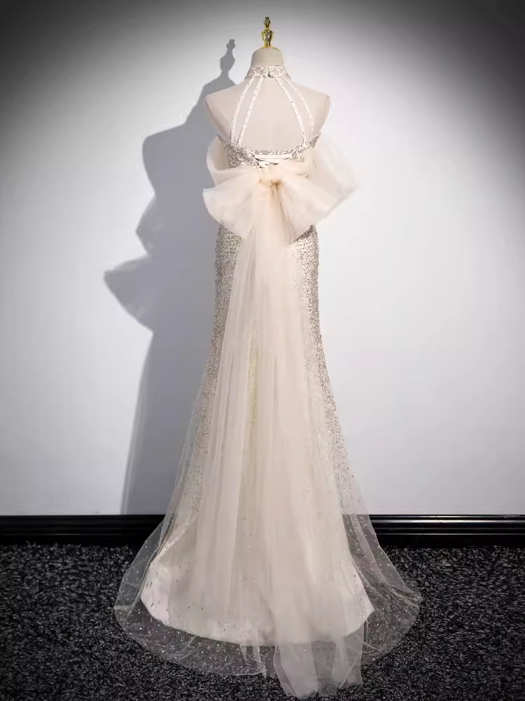 Mermaid High Neckline Sequin Long Prom Dress HZ1024