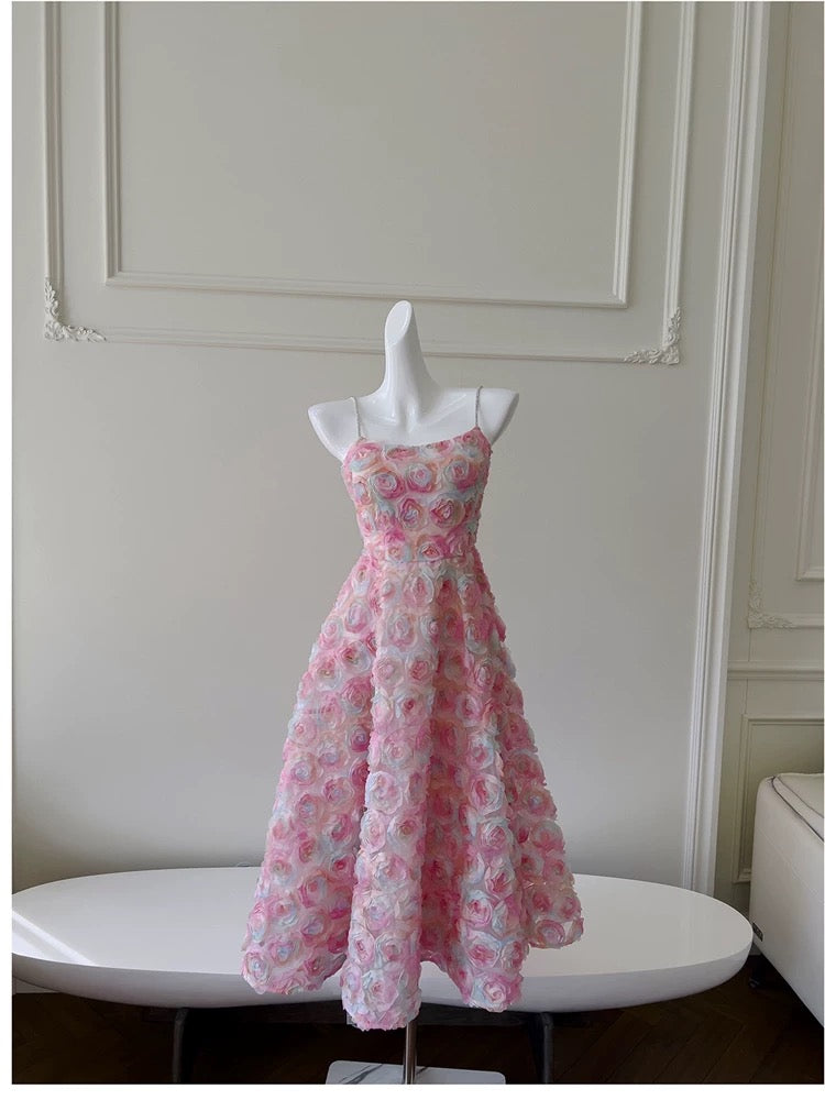 Modest A line Spaghetti Straps Pink Floral Prom Dress Formal Dresses HZ1024