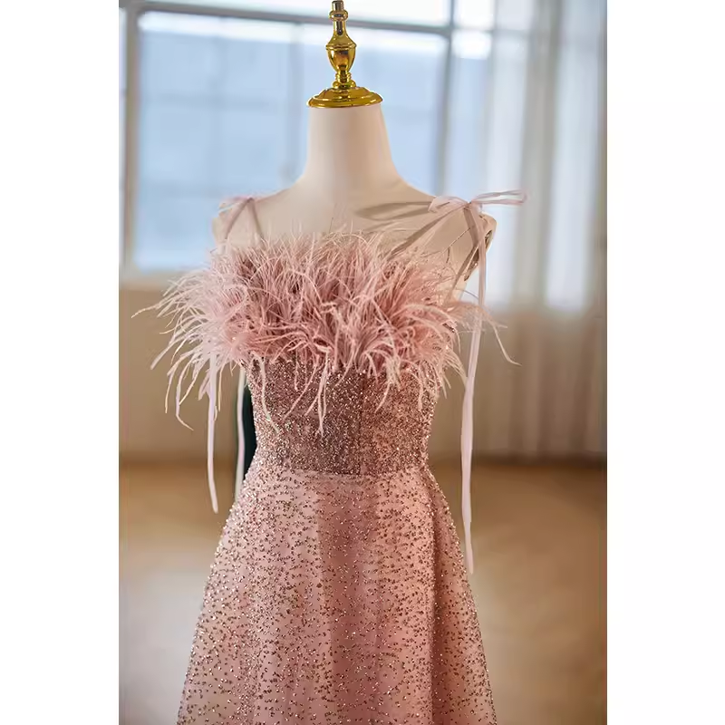 Modest A line Straps Long Sequin Pink Prom Dress HZ1024