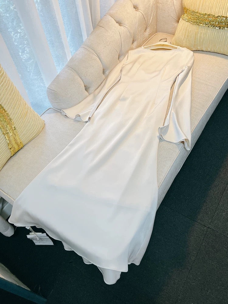 Modest Sheath Scoop Ivory Long Sleeves Prom Dress Formal Dresses HZ1024