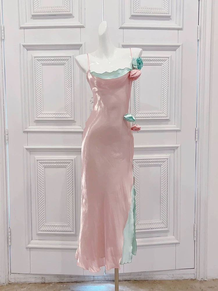 Modest Sheath Spaghetti Straps Pink Long Prom Dresses Evening Dress With Flowers HZ1024