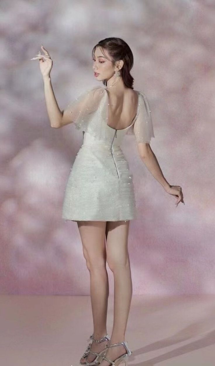 Pretty A line Short Sleeves White Homecoming Dress Short Cocktail Dress HZ1024