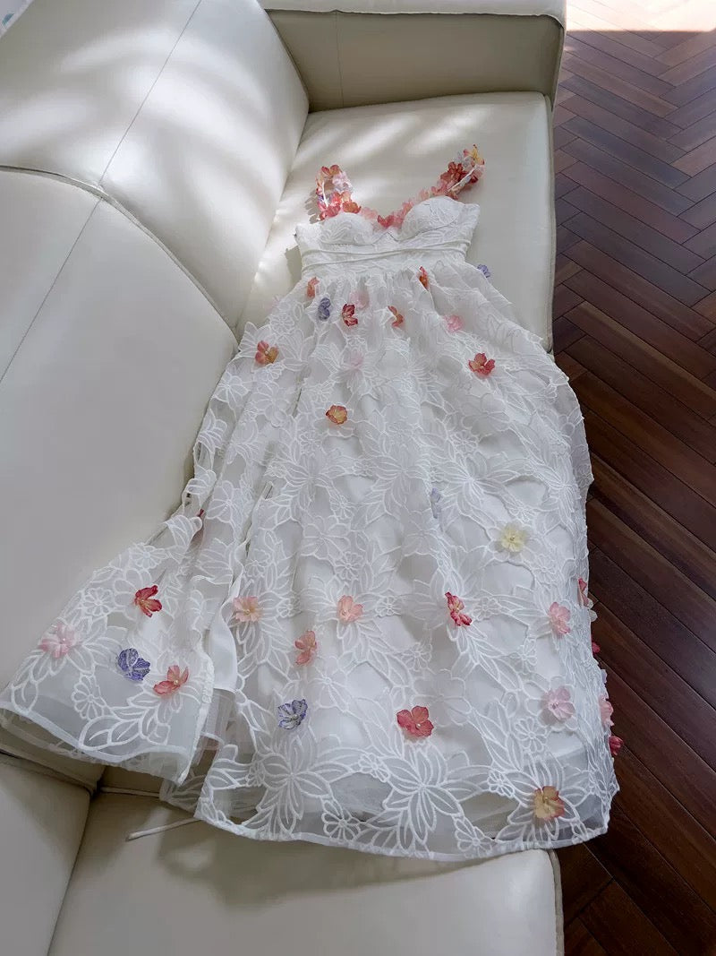 Pretty A Line Spaghetti Straps White Lace Long Length Prom Dress Evening Dresses HZ1024