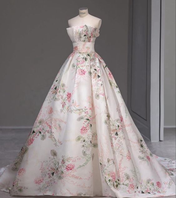 Pretty Ball Gown Strapless Tulle Long Floral Pink Floor Length Prom Dresses Sweet 16 Dresses HZ1024