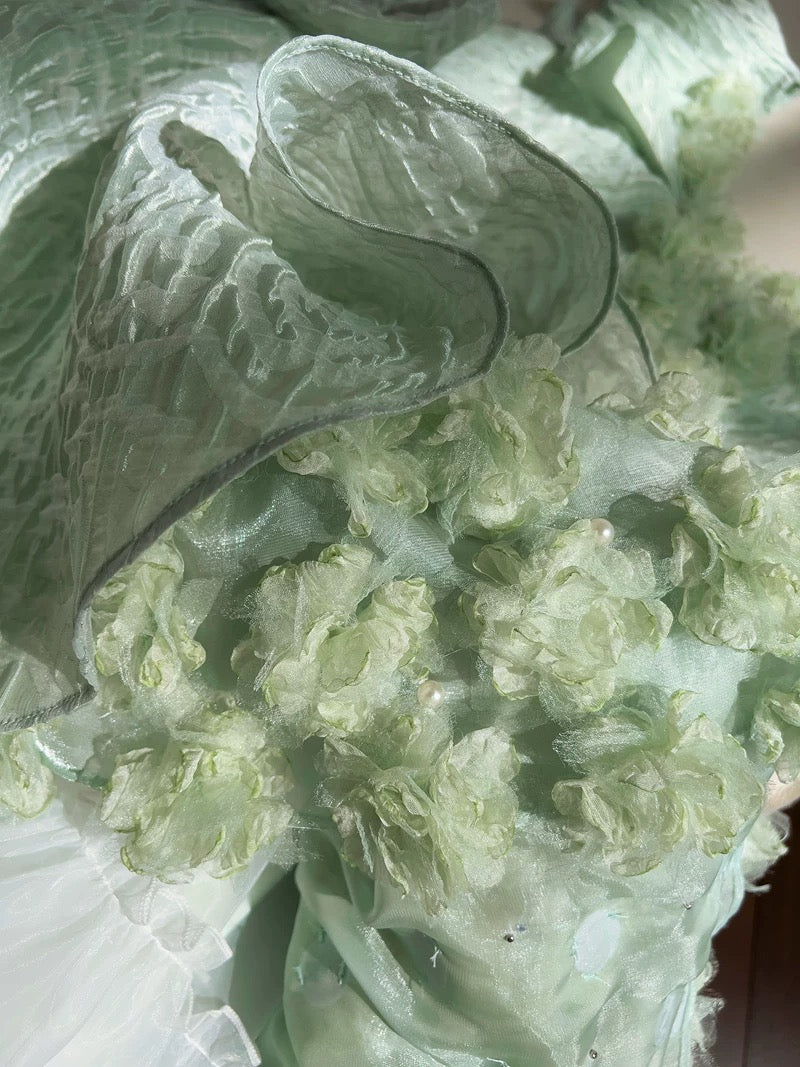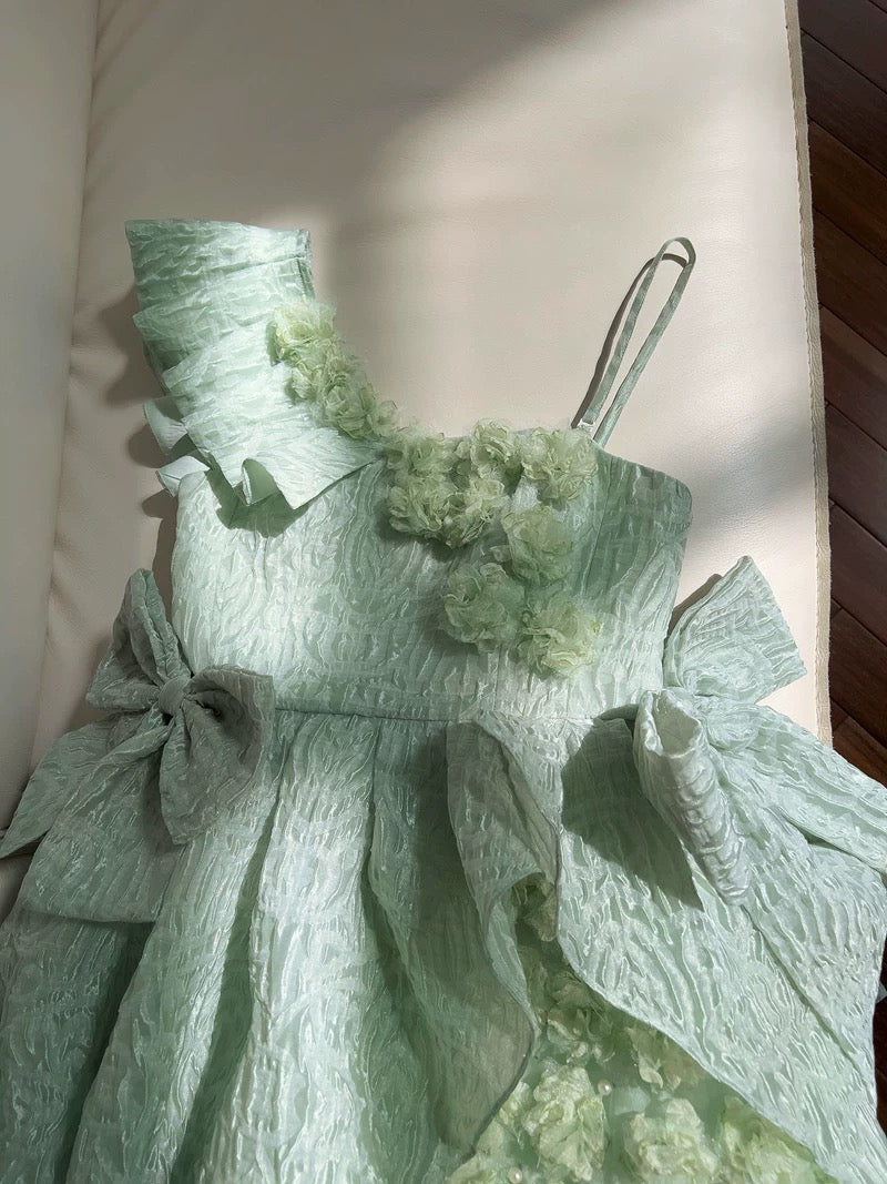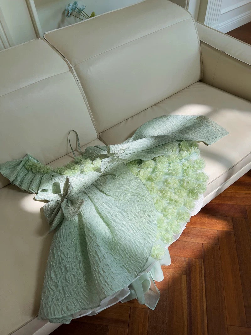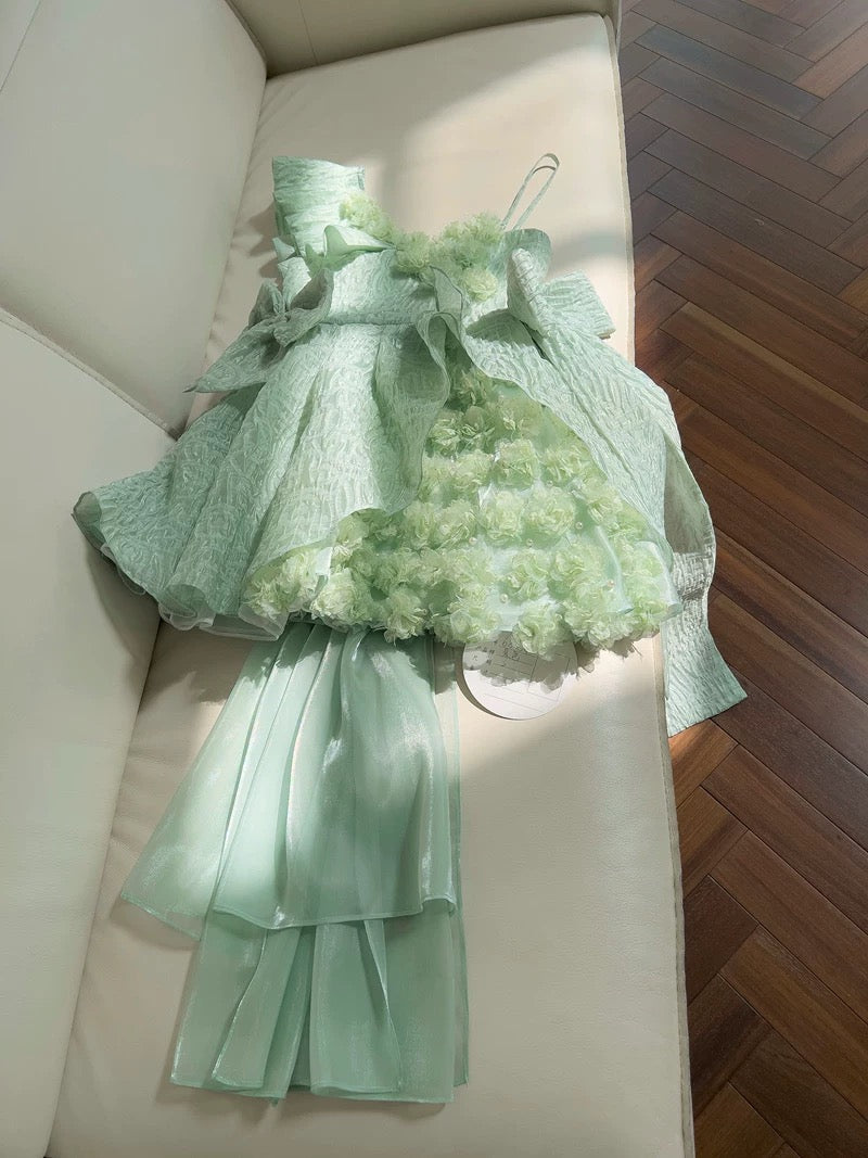 Pretty Ball Gown Straps Mint Green Lace Flowers Homecoming Dresses Birthday Outfits With Bow HZ1024