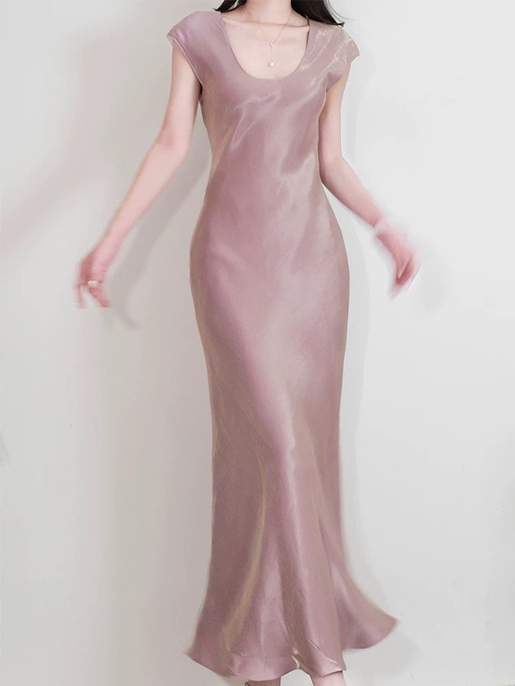 Pretty Sheath Scoop Neckline Pink Silk Chiffon Prom Dresses Ankle Length Evening Dress HZ1024