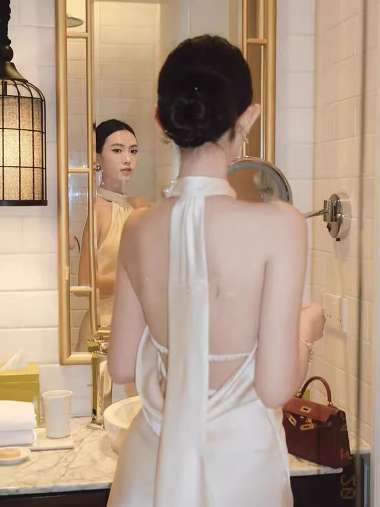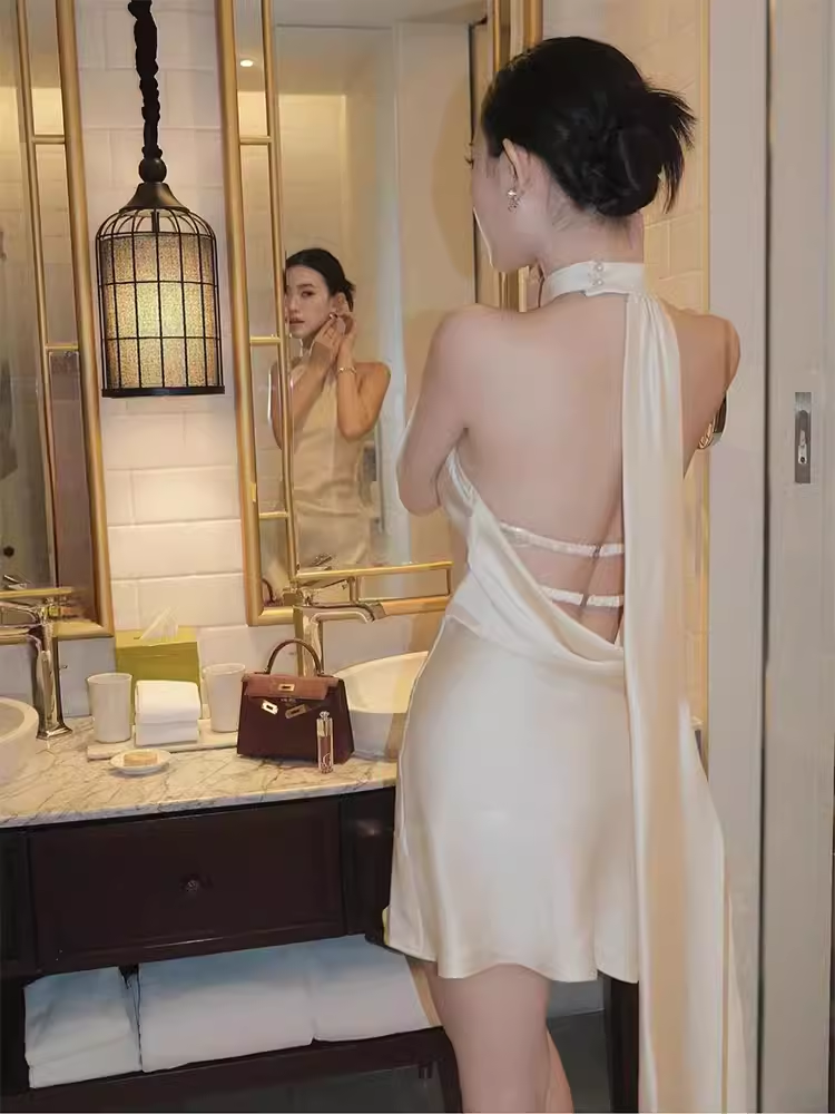 Sexy A line Halter Champagne Short Homecoming Dress 19th Birthday Outfits HZ1024