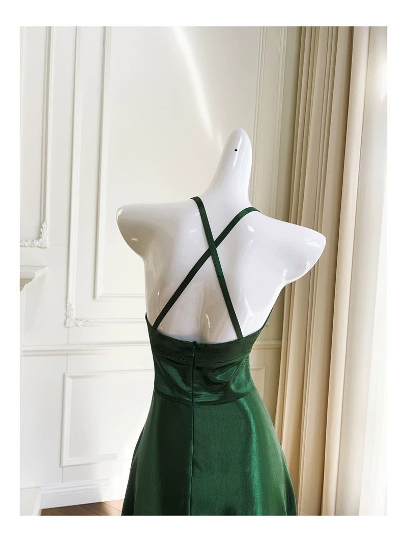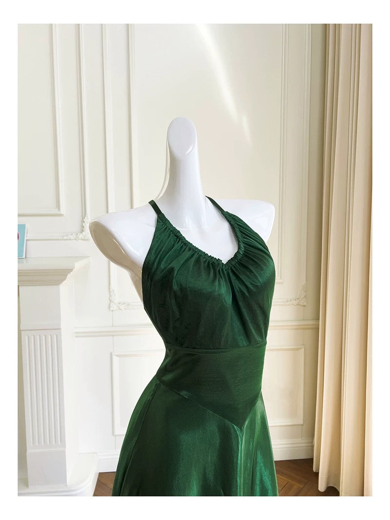 Sexy A Line Halter Sleeveless Green Satin Prom Dresses HZ1024