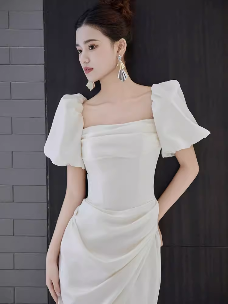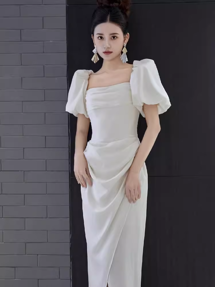 Sexy A Line Square Neckline White Slit Long Prom Dresses HZ1024