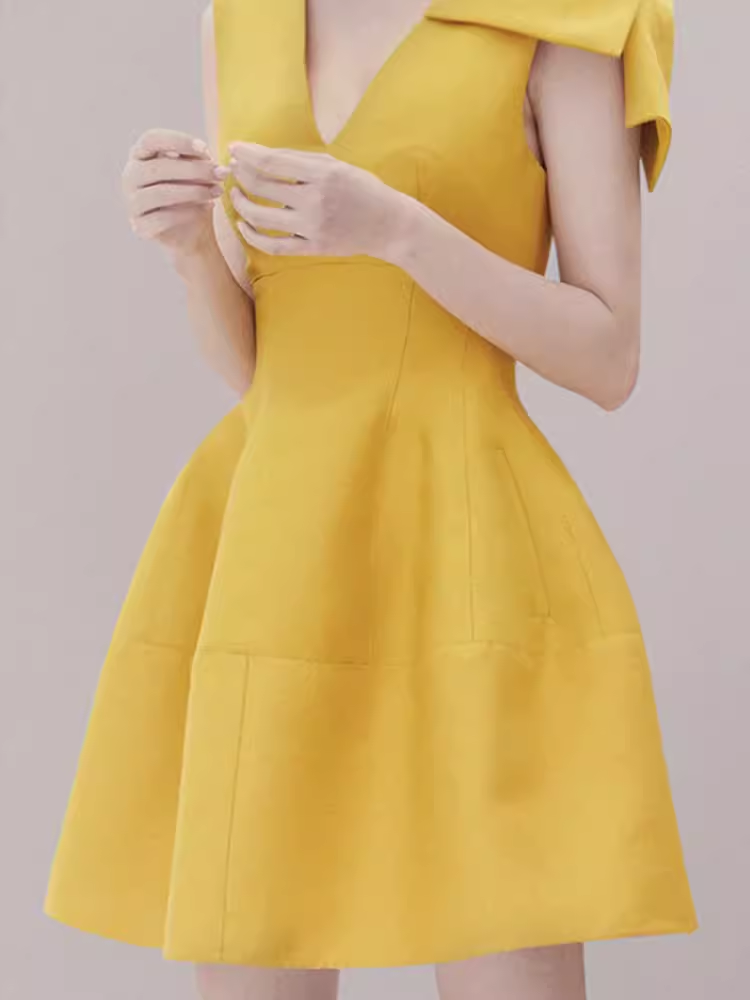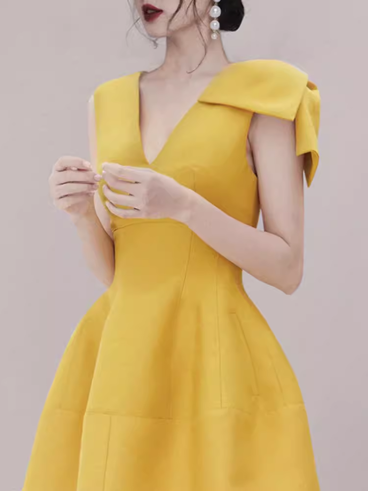Sexy A line V Neckline Yellow Satin Birthday Outfit Homecoming Dresses HZ1024