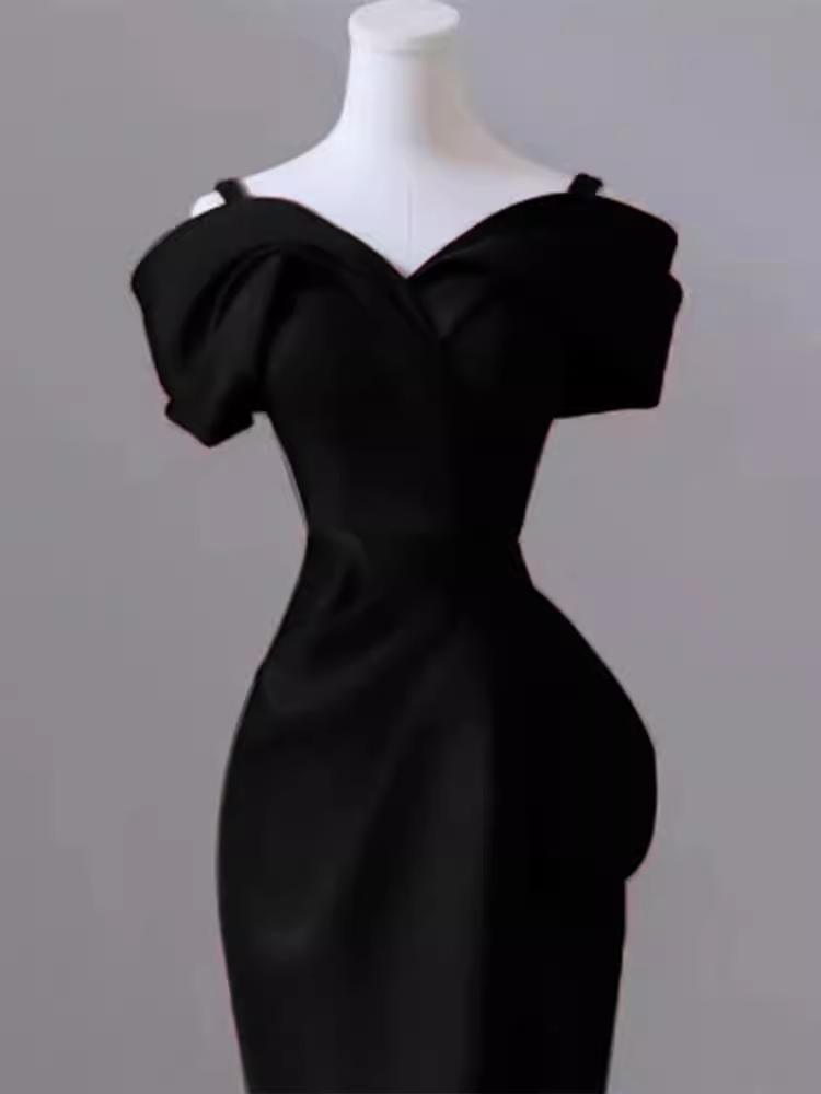 Sexy Mermaid Spaghetti Straps Black Satin Long Prom Dress HZ1024