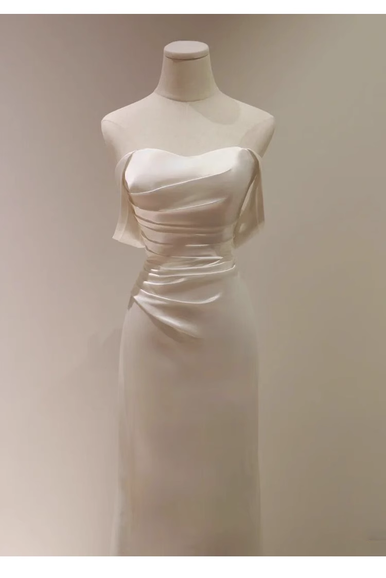 Sexy Sheath Off The Shoulder Short Sleeves Satin Long Wedding Dresses HZ1024