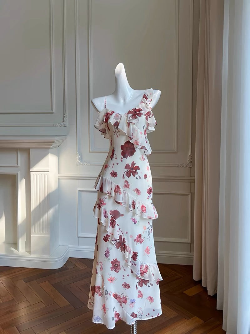 Sexy Sheath Spaghetti Straps Sleeveless Floral Prom Dresses HZ1024