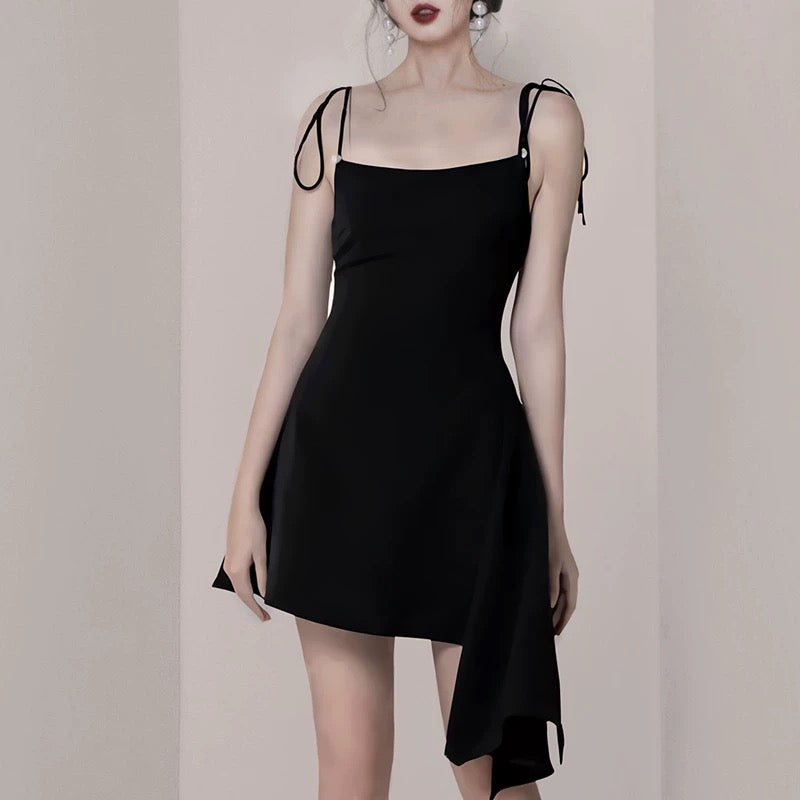 Simple A Line Spaghetti Straps Black Satin Homecoming Dresses Birthday Outfit HZ1024