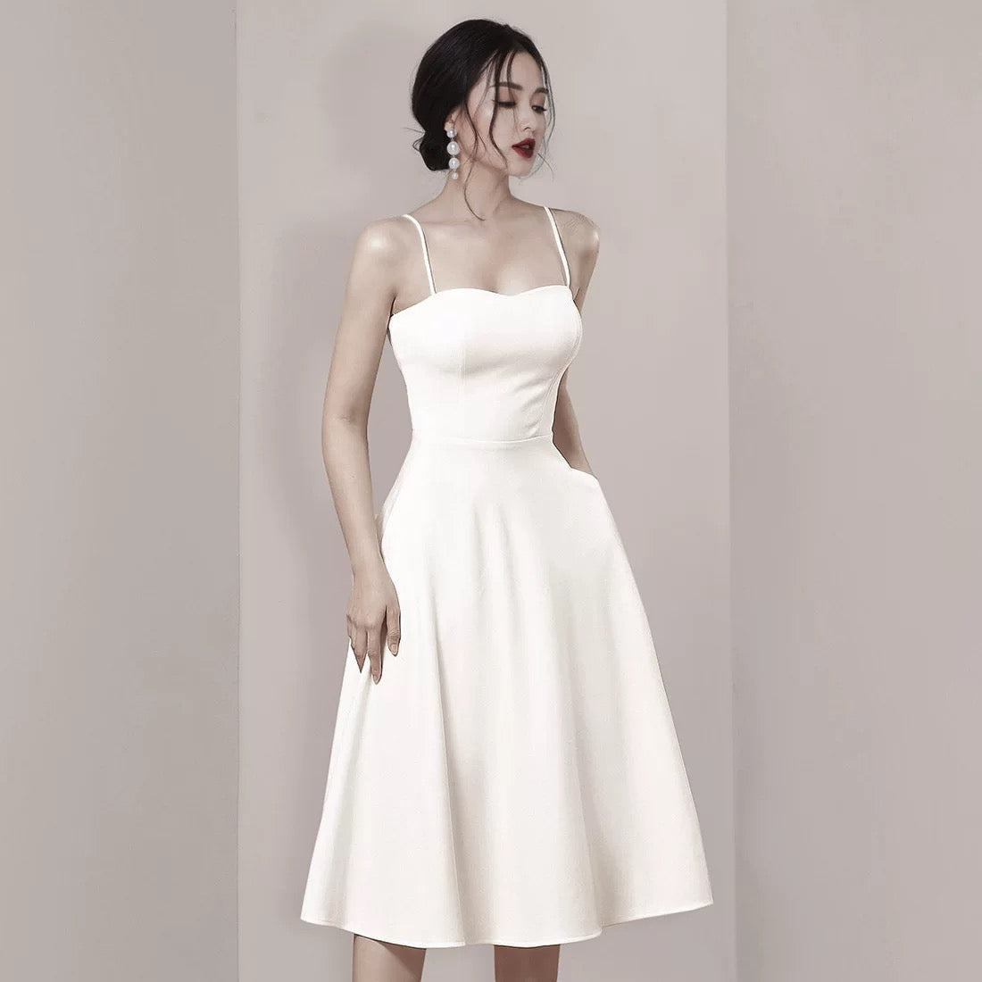 Simple A line Spaghetti Straps White Knee Length Homecoming Dress Birthday Dresses HZ1024